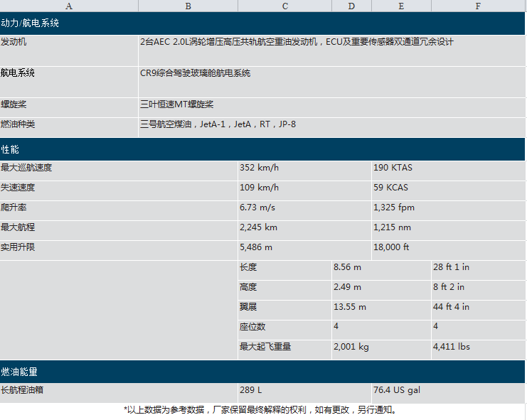 CA42配备的AEC2.0L航空煤油发动机,拥有强大的动力和良好的经济性,表现出众。单台AEC2.0L航空煤油发动机可以提供最大168hp的输出功率,而且经济性能优异。